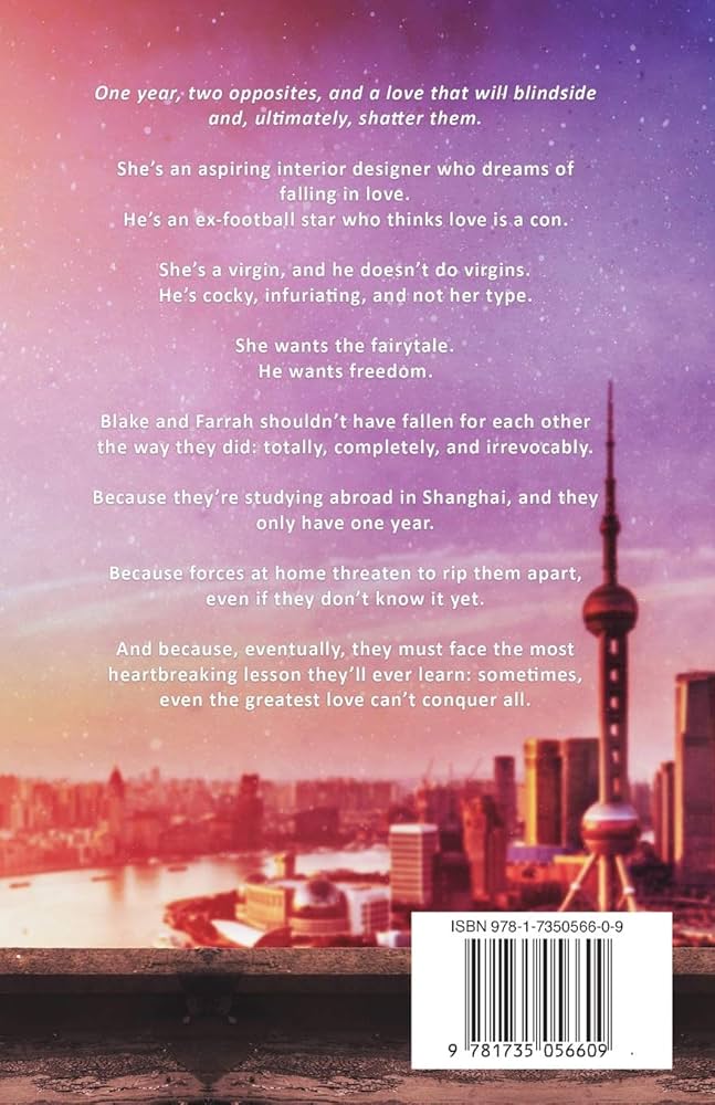 What starts as a physical attraction develops into something much deeper as Blake and Farrah get swept up in the magic of Shanghai—and each other. But they only have one year, and there are forces outside their control that threaten to rip them apart.