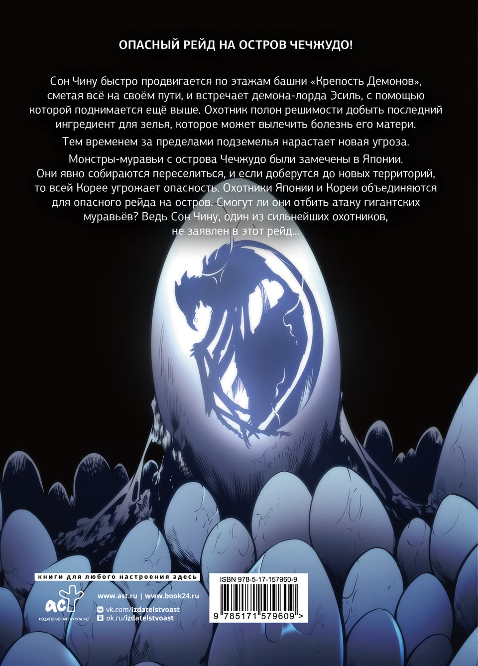 Jinwoo continues to progress rapidly through the Demon’s 6 Castle, climbing toward the top floor with the help of a demon noble who has agreed to escort the intruder if it means not having to fight him herself! Preoccupied with his personal quest, Jinwoo is unaware of the escalating threat outside the dungeon. The ant magic beasts that laid waste to Jeju Island are looking to relocate, and if they reach the mainland, all of Korea could fall. Will the combined S-ranks of Japan and Korea be enough to quell the swarm―and will Jinwoo be joining them?!